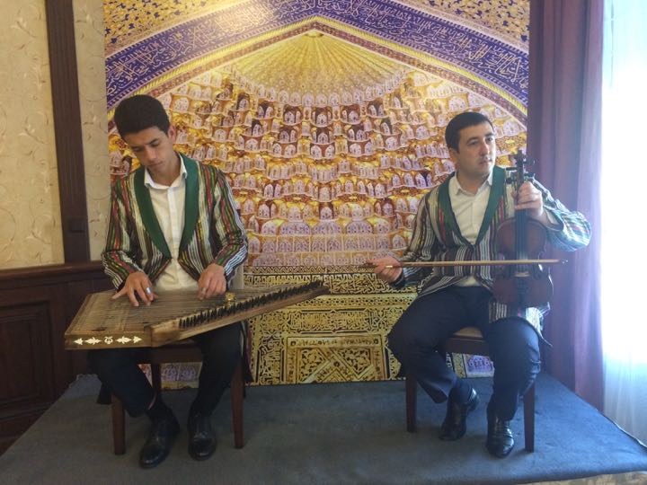 Musicians playing in dining room of M iran Hotel;, Taaskhent, Uzbekistan
