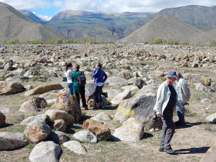 Site of Saka-Usun (Sythian) ceremonies 2000 years ago in glacial boulder, Cholpon-Ata, Kyrgyz Republic