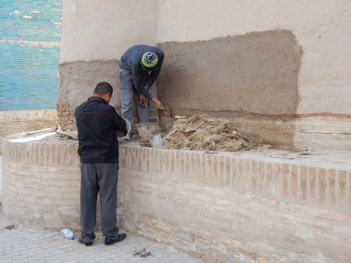 Repairing adobe walls, Khiva, Uzbekistan