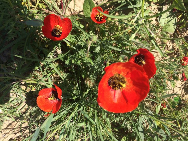 Red poppies (Papaver rhoeas) at Parthian fortress of Nisa (3rd cent. BC) near Ashkabat, Turkmenistan