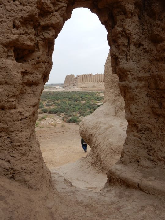 The “Girls’ Castle” in the distance at ruins of Merv, Turkmenistan
