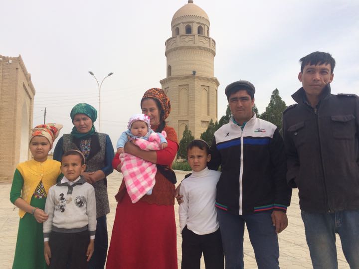 Local family visiting Hodja Yusup Baba mosque and mausoleum, Merv, Turkmenistan
