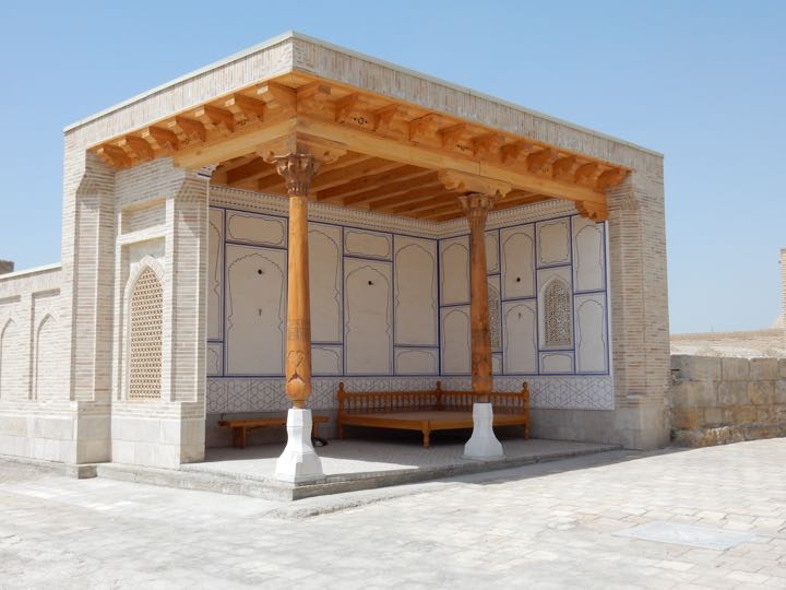 A shaded porch at Chor Bakr Memorial Complex, Bukhara, Uzbekistan