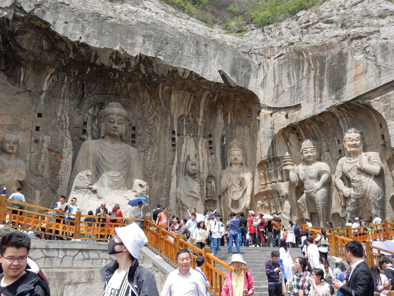 Ananda at far left next to Vairocana Buddha (56 feet high), Fengxian Si, Longmen Grottoes, Luoyang (Video 8)