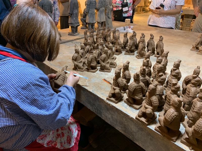 Finishing clay models of terra cotta warriors in workshop, Xian