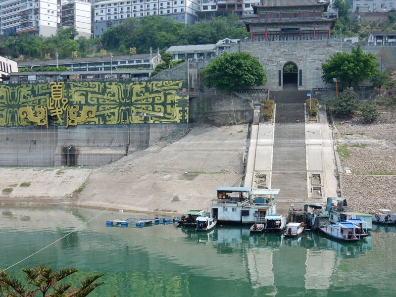 At low water level, it’s many steps down to local boats docked near Fengjie