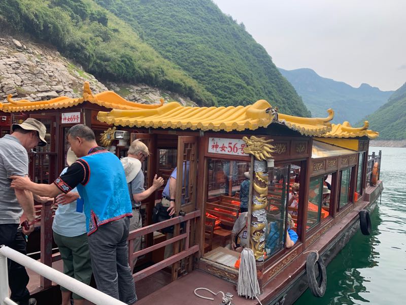 Boarding boats for tour of Shennong Xi Minigorge (gorge no. 3) near Wushan
