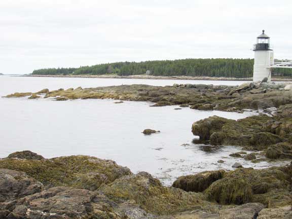 Marshall Point Lighthouse and rocky shoreline near Port Clyde, ME