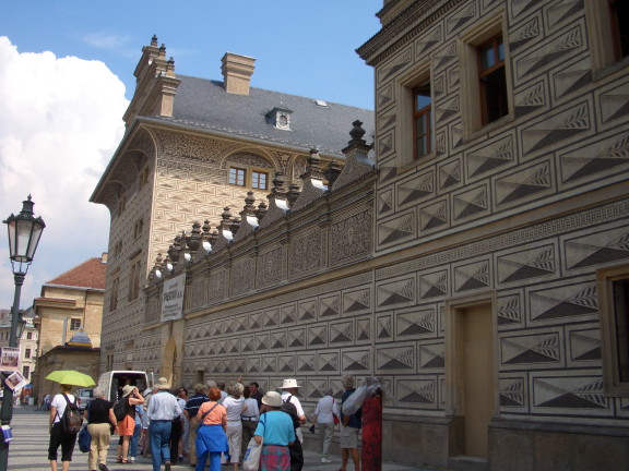 sgraffito walls (scratched through different colored layers of plaster) of Schwarzenberg Palace - Prague