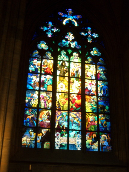 Art nouveau stained glass window in St. Vitus's cathedral - Prague castle