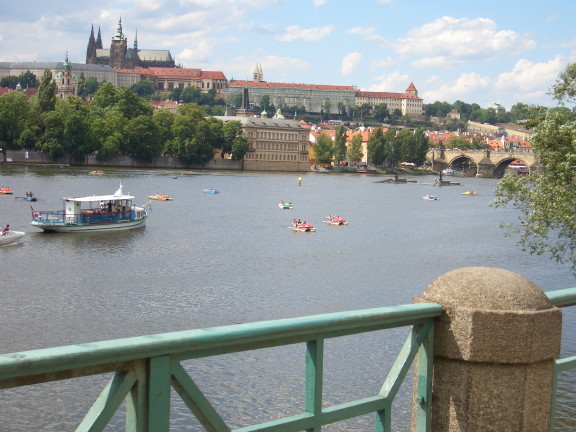 St. Vitus's cathedral and Prague castel from Legli bridge, near Prague National Theater