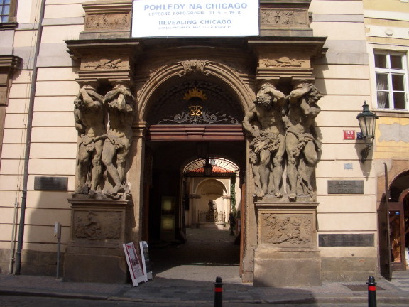 Four statues of Hercules by Matthias Braun (1714) at entrance to Clam-Gallas Palace - Prague