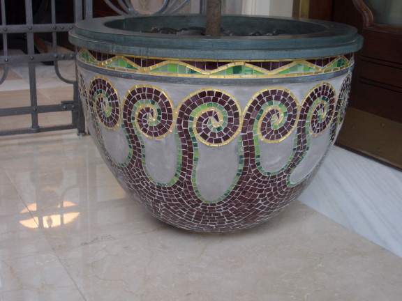 Glass and tile mosaics on urn in lobby of Four Seasons Hotel - Budapest