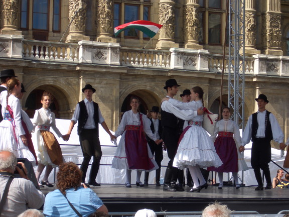 Folk dancers in Kossuth Square, outside parliament building - Budapest