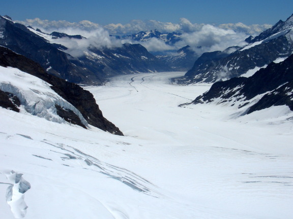 Looking south down the D'Altesch glacier, from the Sphinx Observation Terrace on the Jungfraujoch, at 11,333 feet