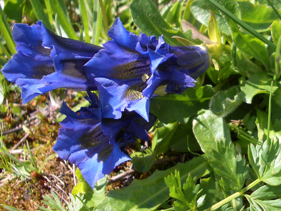 Trumpet gentian or stemless gentian (gentiana acaulis) on trail from Kleine Scheidegg to Männlichen