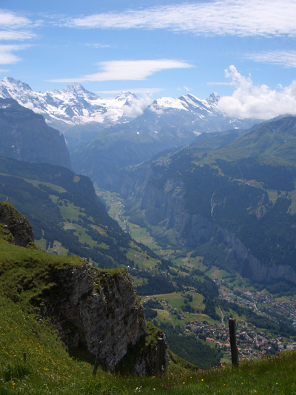 View down to Wengen and then further down to Lauterbrunnen from Männlichen