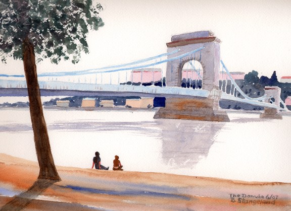 View from Castle Hill (Buda side of the river) overlooking th Chain Bridge and the Pest side of the city