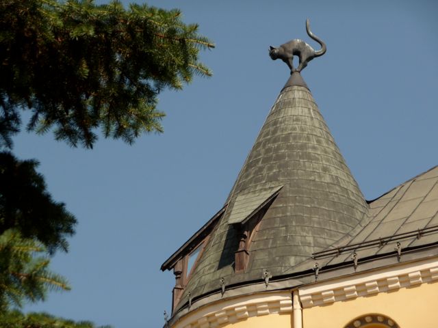 Black Cat on Roof of Art Nouveau "Cat's House", Riga