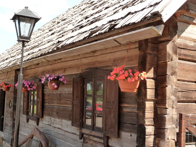 Petunias and Shingled Roof at Rest Stop near Latvia