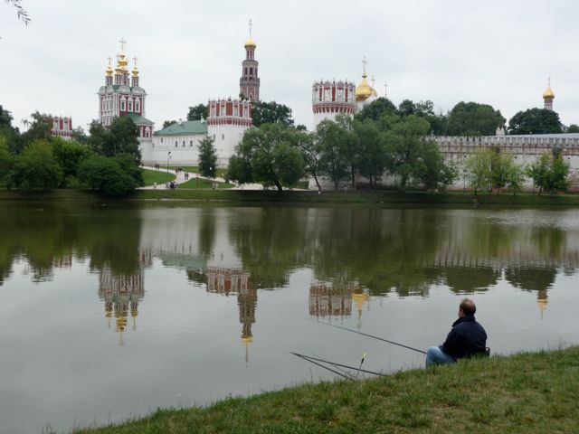 Fisherman and Pond at Novodevichy (Smolensk) Convent, where Peter the Great sent unwanted wives, Moscow My painting of this scene