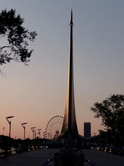 Cosmonauts Museum and Ferris Wheel at Dusk in All-Russia Exhibition Center, Moscow