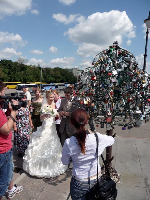 Tree of Wedding Padlocks Left by New Couples on Luzhkov Bridge, Moscow