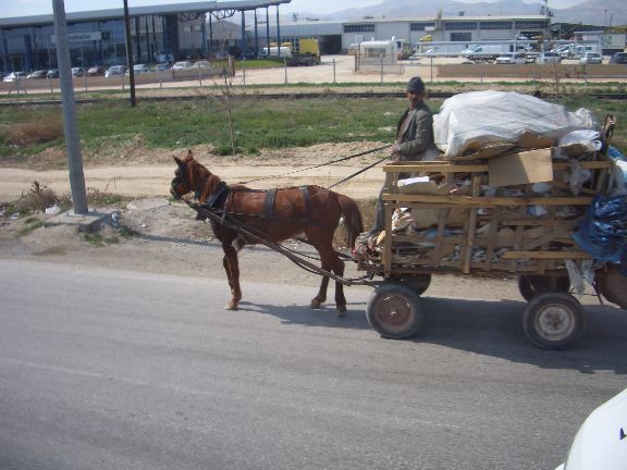 Horse-drawn recycling wagon in Konya