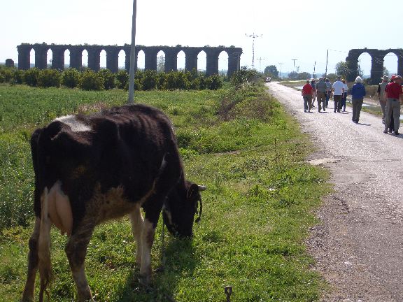 Cow near Roman aqueduct at Aspendos