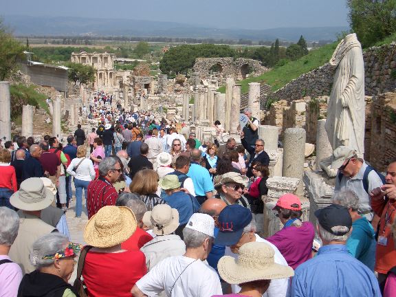 Looking down the crowded Marble Street toward the Library of Celsus. Ephesus