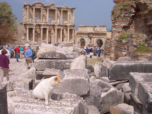 Cat near facade of Library of Celsus, 2nd cent. AD. Ephesus