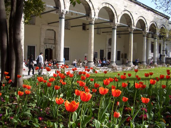 Tulips near the treasury. Topkapi Palace. Istanbul (Tulips originated in Turkey. They are its holy flower.)