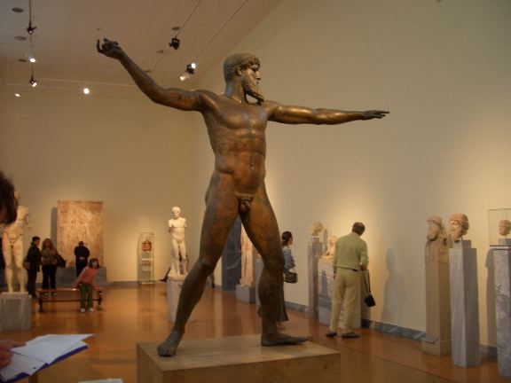 Bronze of Zeus throwing a thunderbolt, 460 BC, found in the sea near Cape Artemision. National Archeological Museum, Athens