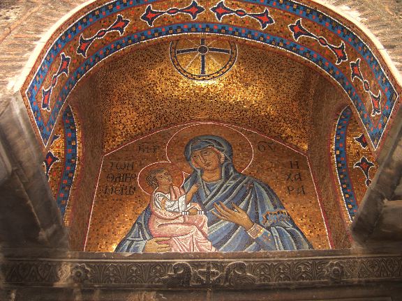 Modern tile mosaic over door of church of Kapnikarea, Athens