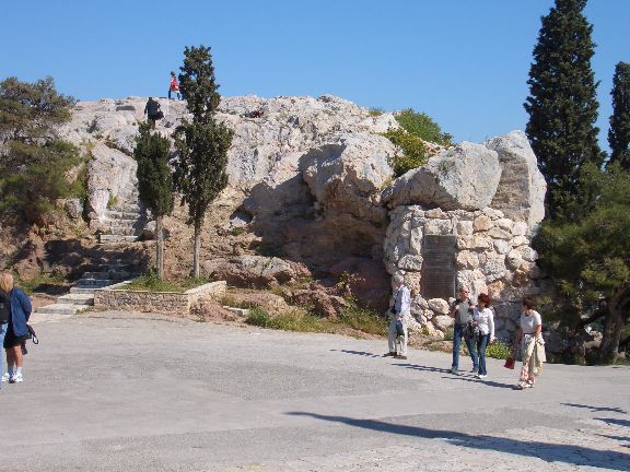 Rock from which St. Paul preached. East of Acropolis, Athens