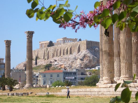 Parthenon and acropolis from Temple of Olympian Zeus, Athens