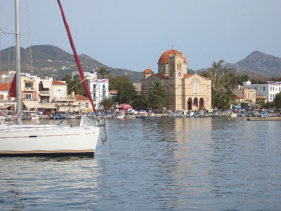 Byzantine church across harbor on island of Aegina